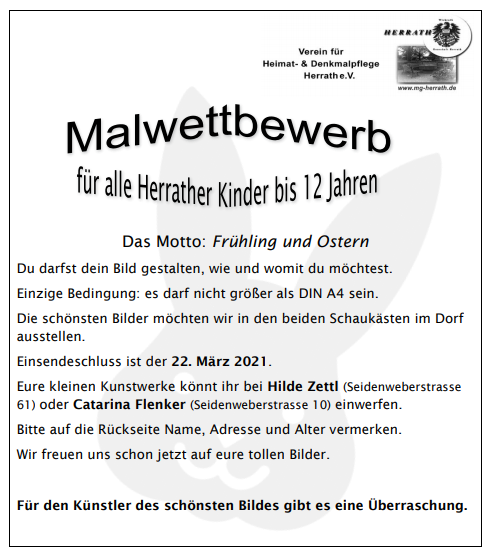 Lange haben wir gehofft, dass wir in diesem Jahr wieder Oster feiern können. Aber aufgrund der wegen Corona geltenden Bestimmungen, fand auch dieses Jahr kein gemeinsames Osterfest in Herrath statt. Für die Kinder im Dorf war der Osterhase aber fleißig und brachte am Karsamstag eine Kleinigkeit direkt an die Haustür.